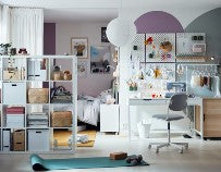 Create a perfect learning environment with IKEA’s flexible and affordable solutions for your homeschool room. From versatile shelving like the KALLAX and BILLY bookcases to adaptable desks like the MICKE, you can design a space that fits your family's unique needs. Organize everything from books and art supplies to manipulatives using the TROFAST storage system, ALEX drawers, and RASKOG carts. These products are designed to maximize space and create an organized, inspiring, and clutter-free area where students can focus and thrive.